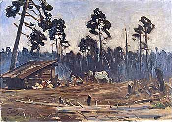 Z liryzmem i têsknot± przedstawiane s± zak±tki rodzimego kraju w obrazach Ludomira Benedyktowicza Bór sosnowy (1913), Stanis³awa Czajkowskiegi Zagroda wiejska (1923), Juliana Fa³ata Las (1910), Stefana Filipkiewicza Zima kryszta³owa (1920), Marcelego Harasimowicza Staw (1898), Stanis³awa Kamockiego K³osy (ok.1907), Henryka Uziemb³o Stary ko¶ció³ w zimie (1908) oraz Micha³a Wywiórskiego-Gorstkin Ruiny zamku w Czorsztynie (ok.1911).